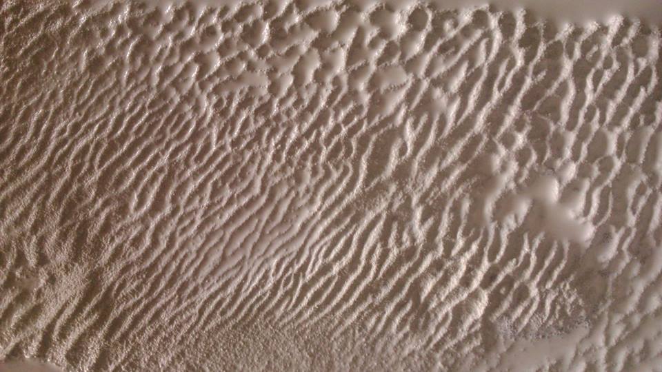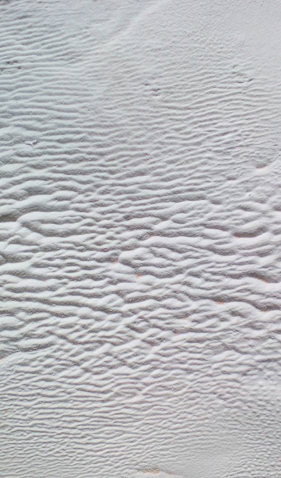 Arena, agua, pintura acrílica, viento y tiempo, todo ello en el espacio delimitado del lienzo. Elementos simples que unidos al azar construyen nuevas realidades, un mundo íntimo de paz, claridad y quietud. Sin embargo, este orden no me relaja, hay una ambigüedad que me atrapa: la blanquísima calma de la superficie es puro movimiento interior. La observación continuada produce cierto desasosiego, como si ocultara una procedencia turbulenta o augurara una agitación por venir. Es una tranquilidad pasajera. Lo que aquí presenta Robert Pous es el instante fugaz que estaba destinado a perecer y sólo su intervención lo ha hecho eterno.