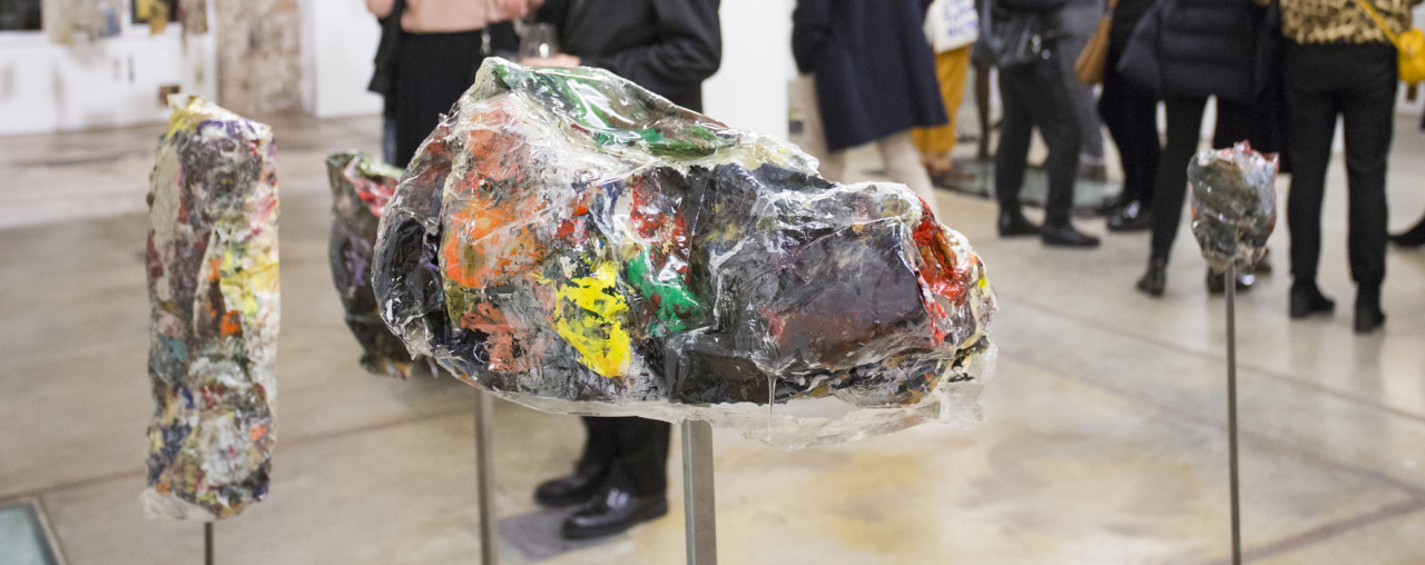 Así va entretejiendo una suerte de mundo reciclado en el que se presenta la materia como suceso en crudo. Piezas tridimensionales como Botes, Piedras,
