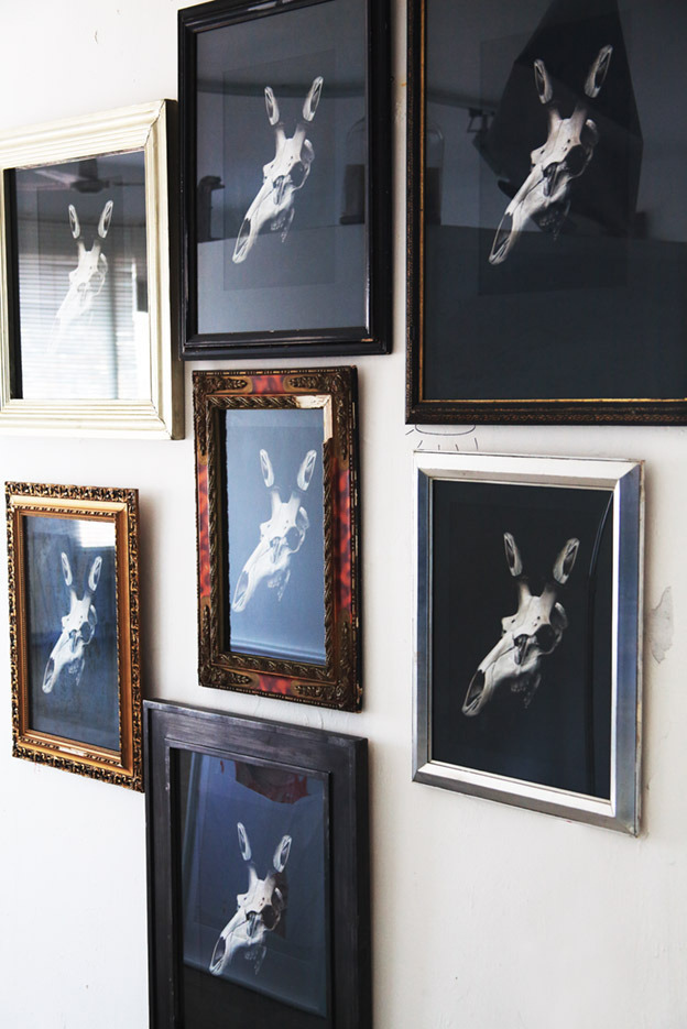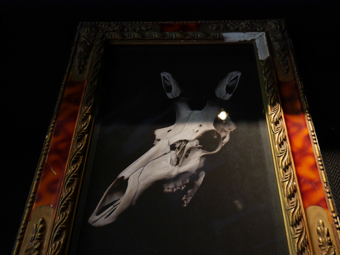 misma muerte repetida en todas las fotos, como algo inexorable, de lo que no podemos escapar y que nos iguala. Sin embargo, los marcos diferentes hacen referencia a las distintas formas de entender la muerte, tantas como personas existen ya que dependerá del carácter, circunstancias, experiencias, educación, convicciones religiosas, etc. Granados distingue ese entorno que enmarca la muerte desde tres perspectivas dispares y complementarias: la primera es la del cuerpo, quizá la parte más vulnerable, la que sufre la enfermedad, la debilidad y la desaparición. En segundo lugar estaría el ámbito de la mente y cómo ésta trata de conocer, entender, asumir y reflexionar sobre el concepto muerte, la propia y ajena. Y por último le presta atención al aspecto espiritual, es decir, a cómo las vivencias trascendentales y las creencias cambian el modo en que la muerte se asimila. La posición del artista se deja traslucir al crear una calavera que sonríe. Ha manipulado digitalmente la muerte para ridiculizarla, la cuestiona y la pone en evidencia como una impostora. Otra vez necesita destensar, quitar seriedad para dejar de ver el hecho natural de morir con dolor y desasosiego.