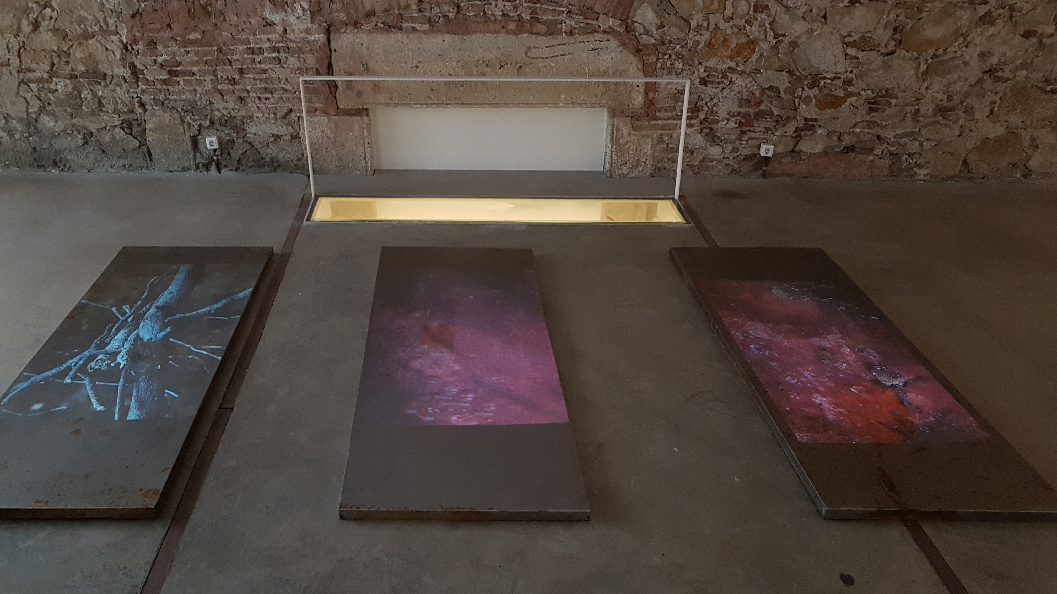 Con esta video instalación, Granados trata de impulsar la relevancia de la comunicación poniendo en relación los cuatro elementos ancestrales: tierra, agua, aire y fuego, con la terna sacra que simboliza la perfección y el equilibrio. Al unir el 4 y el 3 nos da el número 7 que alude a la totalidad del universo en movimiento. La materialidad queda representada por tres chapas de hierro dispuestas horizontalmente sobre el suelo por Rosa; esta es la tierra, símbolo de fertilidad, sobre la que se derrama agua, elemento que hace posible la vida. Sobre las planchas se proyectan 7 video arte cuyas imágenes devienen en abstracciones de la naturaleza; la luz de los filmes es la metáfora del fuego, mientras que el aire se referencia a través del sonido cuya onda lo requiere para desplazarse y hacerse audible. El conjunto forma una instalación que fusiona todos los elementos para favorecer la evolución de la conciencia.