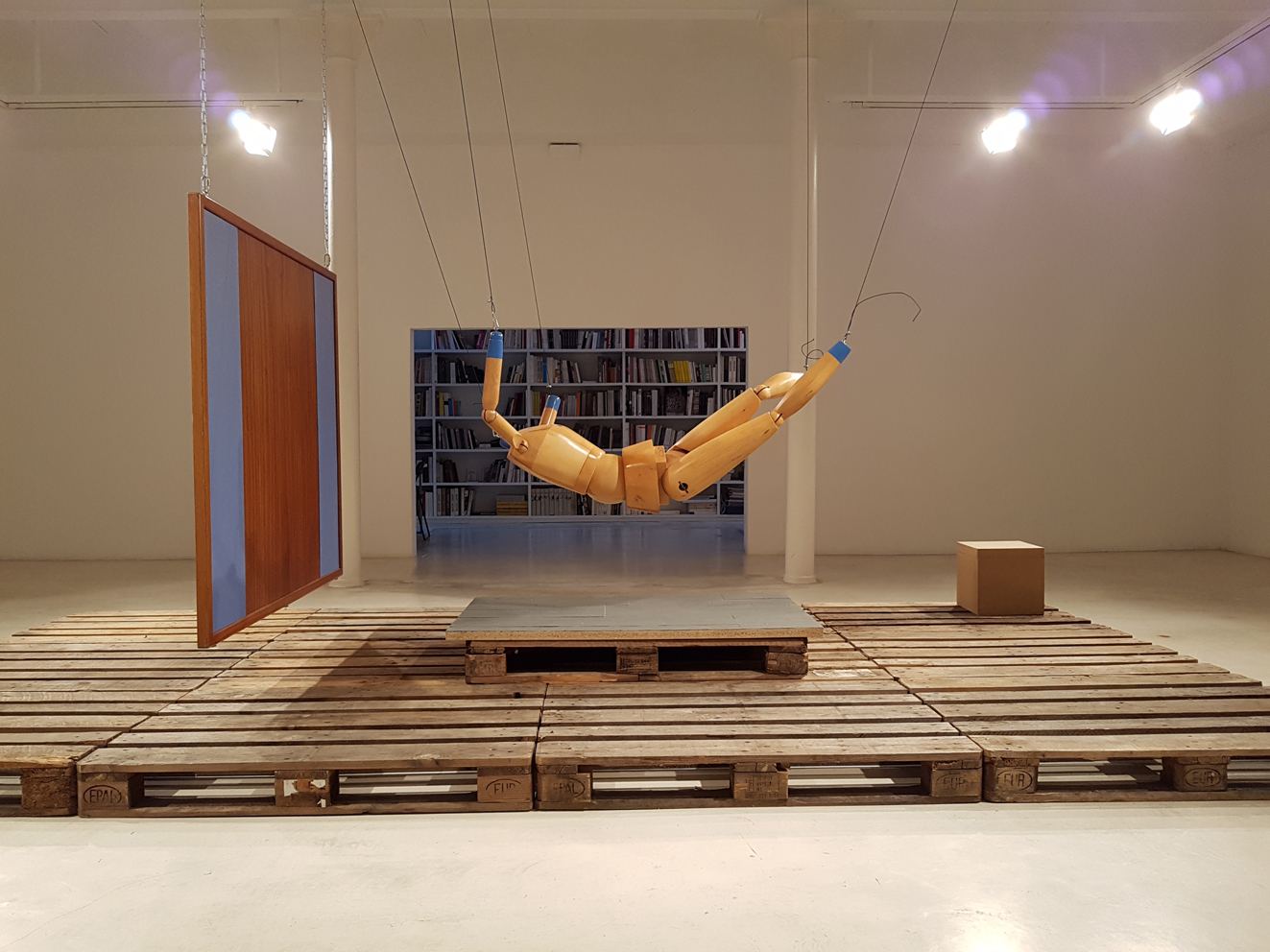 Sarmento sugiere contrastes entre la naturaleza y la geometría arquitectónica; entre el cuerpo de una mujer (en su mínima y frágil figura de cera como las delicadas bailarinas de Degas) y una torpe estructura antropomórfica de madera articulada; incitación erótica y rigidez artificial; entre lo real y lo construido; entre el ser y el parecer.