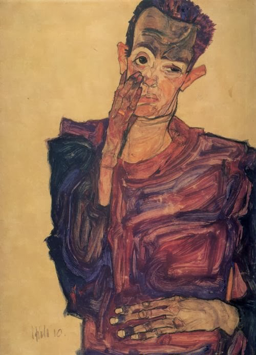 Este ser compuesto por tantos fragmentos disgregados, ha de encontrar el camino de unirse para no caer en la histeria y para Schieler la pintura es mejor que la terapia de los psiquiatras de su época; establece un diálogo entre el yo cuerdo y el yo enajenado para llegar a construir el yo real.