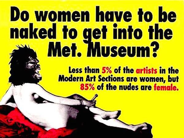¿Tienen las mujeres que desnudarse para entrar en el museo? La leyenda de este cartel de las Guerrilla Girls de 1985 frente al Museo Metroplitano de New York no impactaría igual si no le hubieran colocado la máscara a la Odalisca de Ingres. Independientemente de las reivindicaciones feministas del colectivo y su expresión plástica en forma de carteles, acciones y performances para una mayor presencia de las