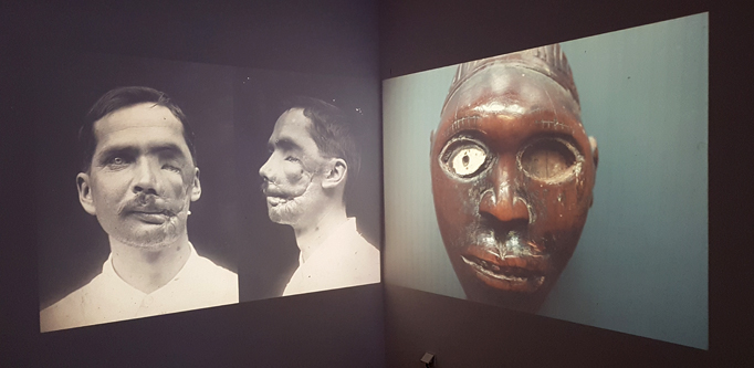 El individuo, tal como Freud lo ve está atrapado en su propia naturaleza y limitado por la sociedad moderna y civilizada, vive en una tensión que le dirige directamente al conflicto. La guerra se revela como una supuesta resolución cuyas consecuencias terribles quedarán impresas en las huellas de la reconstrucción quirúrgica creando la máscara del nuevo individuo, una identidad imposible de recomponer que responde a una intimidad dañada, un otro, una psicología alterada y resquebrajada. La víctima por acción de la brutalidad del monstruo queda condenado a ser hijo de la maldad; su rostro y cuerpo marcado le equipara al acto violento, aunque la reparación y la regeneración le ayuden a cumplir con las funciones básicas (comer, hablar, percibir,…) para sobrellevar una vida más o menos normal, se ha transformado en una imagen medial, en un portador de un sentido que se coloca por encima del individuo, simbólicamente no puede evadirse del acto del horror y será objeto de rechazo o de lástima, una máscara como certificado de la presencia de la violencia que anula al sujeto.