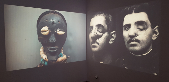 Kadder Attia, sin embargo, observa la máscara en una relación de tiempo articulado a partir del binomio agresión/reparación en la exposición de la Fundación Miró de Barcelona, Las cicatrices nos recuerdan que nuestro pasado es real, en la serie Mitos: donde incluye el mito de lo perfecto y el mito de la reparación. Los dípticos están compuestos por las marcas de la guerra, antes y después de la cirugía reparadora; la acción violenta destructiva sobre el cuerpo hace referencia al “ello” de Freud, a esos impulsos inconscientes y pulsiones instintivas que Attia vincula con la máscara ritual