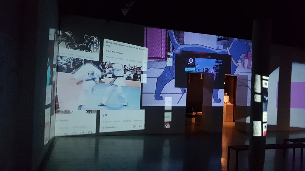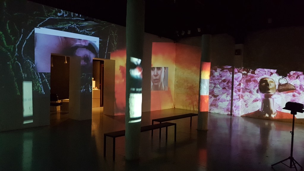 En primer lugar, la videoinstalación de Granados permite sumergirse literalmente en la ambivalencia de las imágenes y sonidos a través de una catarata atropellada y asincrónica de objetos de consumo y actividades diversas que conforman la cotidianidad. Se ha creado una fantasmagoría, que a diferencia de la orquestada por la cultura de masas, no pretende ser un espectáculo gratificante ni reconfortante. Mas bien al contrario, aquí la intención gira en torno a la posibilidad de despertar del colapso que supone el exceso fetichista en que se han convertido las experiencias sensoriales y culturales, como sustitutivos complacientes de la realidad. Las imágenes y sonidos de la video instalación mantienen una posición contraria a la ilusión de un mundo idílico; evidencian la soledad y fragmentación de una humanidad alienada, herida y depauperada. El espectador asiste a un espacio de exageración y superabundancia provocando una violencia perceptiva que posibilite una potente necesidad de reacción.