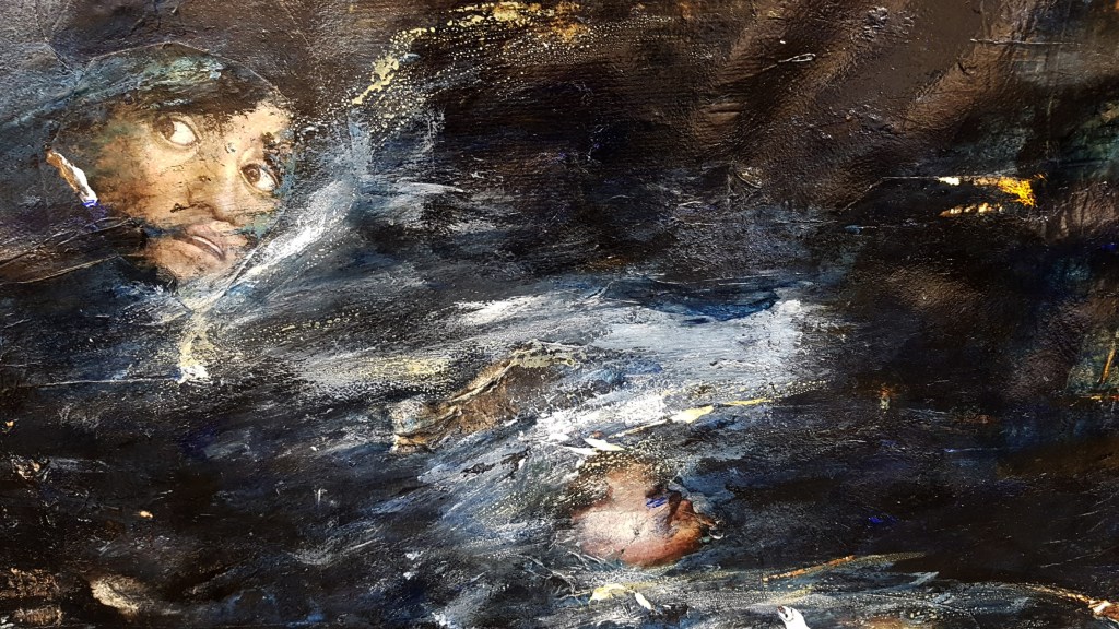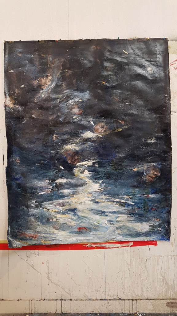 En Salmos, ya nada queda de las bellas y tranquilas aguas de las Vedute de Canaletto, donde los atardeceres de la laguna son amables, acogedores y vienen cargados de augurios de progreso. Muy a pesar de la artista, la calma ha sido reemplazada por la representación de un diluvio contemporáneo y unos mares revueltos que ahogan nuestra memoria.