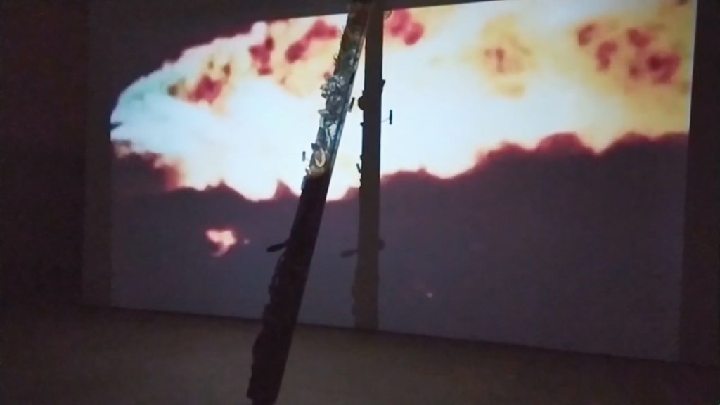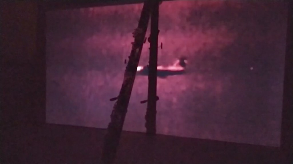 Esta violencia se amplifica con la proyección de un avión derribado en vuelo; este avión, como artefacto fruto de la tecnología, la ciencia y el diseño, encarna la simbología del conocimiento. Un saber que no solo nos transporta de un territorio a otro, sino que además nos permite volar en un sentido amplio del término, convirtiéndose en la alegoría de la imaginación destruida por la violencia y la competitividad cotidiana en el mundo que consideramos real o físico pero muy presente también en el mundo virtual de las imágenes. Mientras este video es compartido y visualizado en internet miles de veces, como tantos otros, nadie se pregunta si es real o es una película, una creación digitalizada o un videojuego; nos hemos acostumbrado tanto a la violencia que ya no nos causa curiosidad ni asombro.