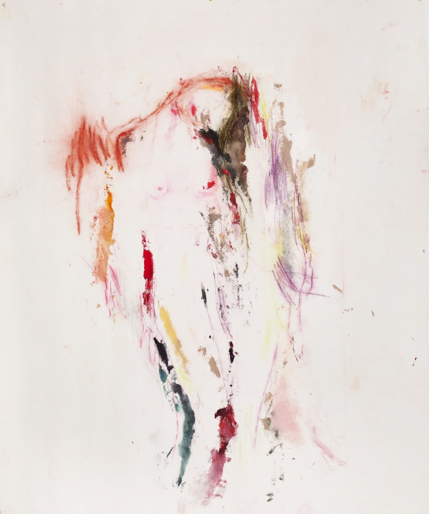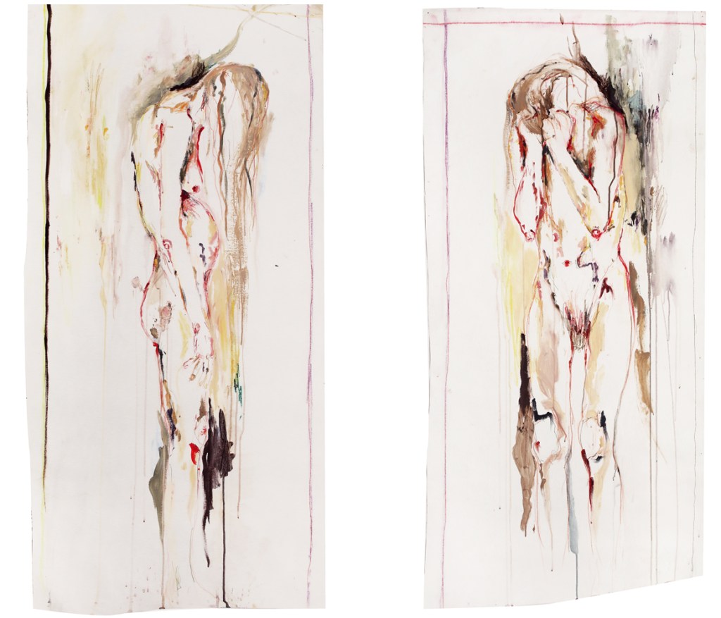 En las piezas de Monsó, los cuerpos emergen coloridos pero su presencia es frágil. Están al borde de la desaparición. El cuerpo es la memoria estructurada: al hacerse carne, la información se convierte en un legado valioso, un orden portador de conciencia que ha de protegerse. Pero en el juego de lo visual, la organización de lo recordado se diluye, remarcándose la levedad del ser que en cualquier momento puede dejar de ser para convertirse en una estructura diferente.