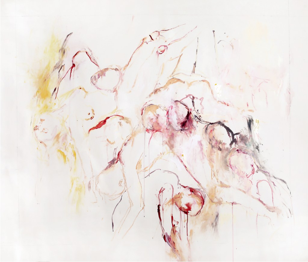 Los cuerpos aquí representados no están rendidos, no han claudicado, pero sí han aceptado su materialidad fluida. Han asumido el ritmo y el ciclo y por ello reposan, ya sea solos o en compañía; para sentir que la pérdida en la que se basa su fisicidad no es tal. La vida sigue fluyendo en la memoria de las emociones convertidas en cultura y allí donde se conjuga energía, tiempo y organicidad.
