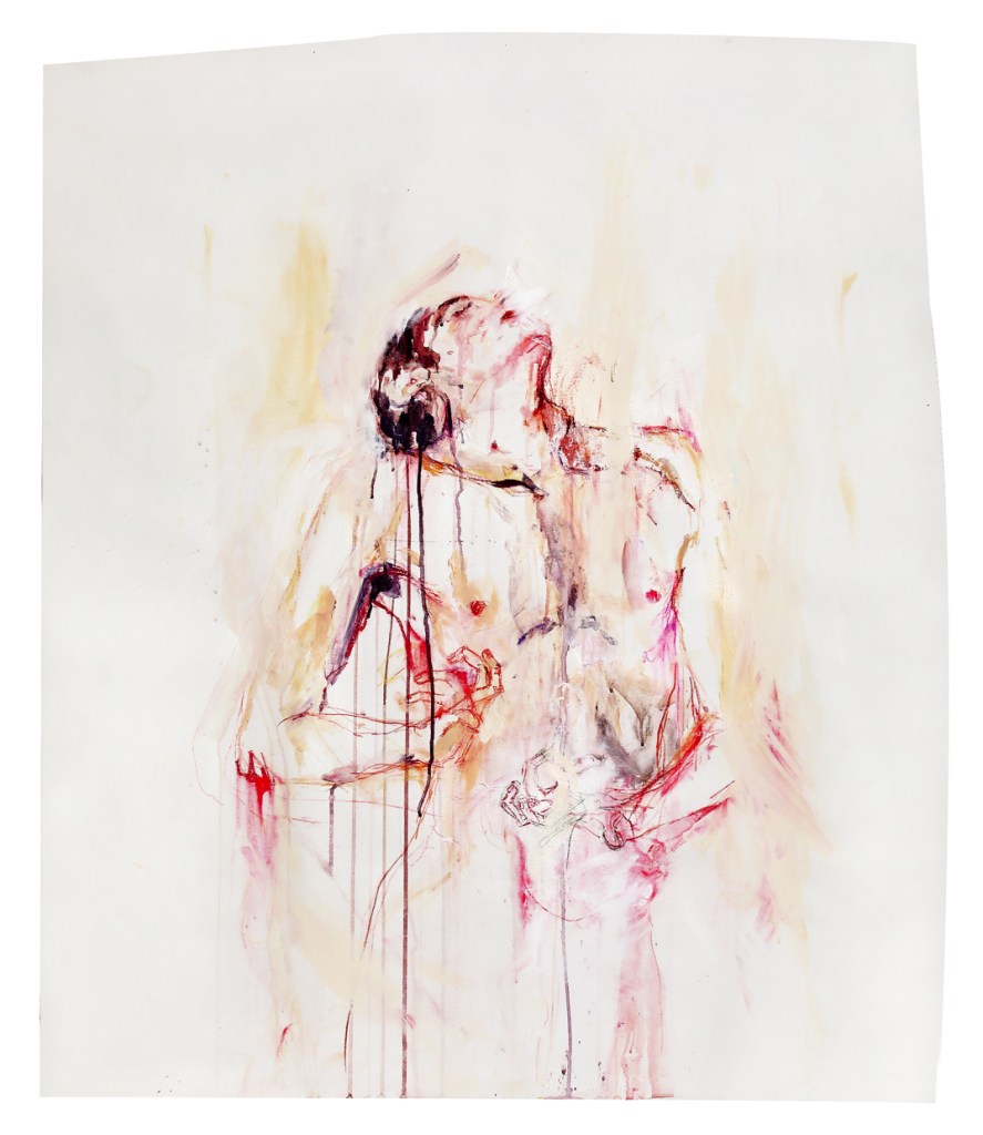 Aunque lo que vemos en las obras de Ana Monsó son aparentemente figuras inmóviles y abandonadas a una situación relajada, el modo en que se resuelve la composición, la manera nerviosa y caótica en que se aplica la pintura, la pincelada suelta y abierta, las manchas, borrones, chorreones en contraposición a los espacios en blanco, se combinan produciendo la misma tensión que las fuerzas contradictorias. Los binomios visibles/invisibles, armonía/inestabilidad, orden/caos, concreción/abstracción y limitación/libertad aparecen en las formas que la artista crea sin concretarlas del todo. Los cuerpos no están delimitados por líneas estrictas y cerradas, sino por ejes orgánicos que oscilan libremente cargados de potencialidad. Sus piezas describen los movimientos contrarios, ya que por un lado intentan abandonar la bidimensionalidad, mientras que por otro lado evolucionan hacia cierta abstracción.