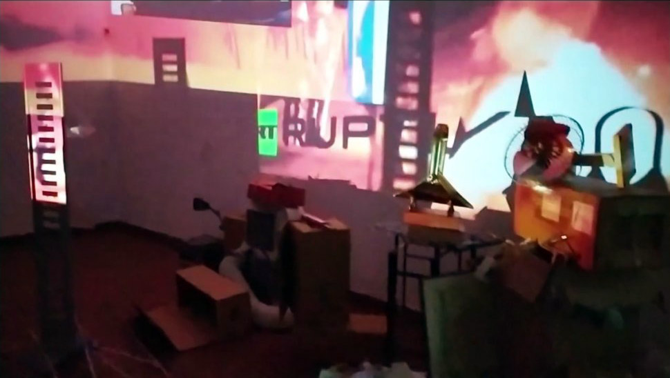 La instalación Casa desmontada y Cuerpo Virtual es la metáfora con la que se describe cómo se vive en el centro de dos realidades difusas que se solapan; lo que conocemos se está desarmando, los modos de relación y los objetos que hemos heredado ya no tienen el sentido que tuvieron. La memoria de lo anterior no responde a la difícil tarea de equilibrar entre lo que ya no sirve y lo que todavía se revela como vago y cambiante. El resultado es un día a día confuso y abrumador que embota los sentidos e incapacita para la acción constructiva. Lo que se presenta en este proyecto es un mundo en transición donde se entremezclan la dimensión física (que no es posible conocer en toda su amplitud), con un tiempo histórico cuya memoria se desvanece y una virtualidad construida toscamente como una existencia en paralelo. Este intermedio se presenta como un campo de batalla caótico donde se establecen relaciones enmarañadas, burdas y precarias. A pesar de encontrarnos en un contexto sin precedentes, de mayor acceso a la información y gran libertad de expresión y creación, el futuro que se divisa es incierto y cada vez más opresivo; algo que ya se vislumbra en un presente que se desmorona, donde las personas son sometidas a sistemas de vigilancia, control y censura como nunca antes.