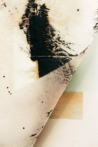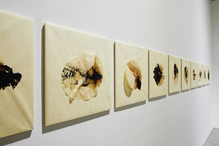 Cada capa de cualquiera de las piezas de ambas series, es el registro de dos estados interiores distintos, dos instantes de la existencia que se relacionan en un plano consciente. La pintura de ambos pliegos superpuestos mantiene una relación complementaria, incluso en algunas piezas parece llegar a fundirse restableciendo una profunda armonía. Las veladuras del material conectan los momentos separados entre lo racional e irracional, entre lo controlado y lo perdido, entre consciente e inconsciente, entre lo orgánico y la geometría, para que la dicotomía entre visible e invisible se fusione en una sola realidad; una renovación de lo real expresado en el lenguaje de signos que precede lo racional y se traduce en pura representación del ser. La artista resuelve el conflicto entre lo visible e invisible aceptando los límites confusos y ambiguos de lo racional e irracional, propiciando el encuentro en una poética de la comunicación de opuestos.