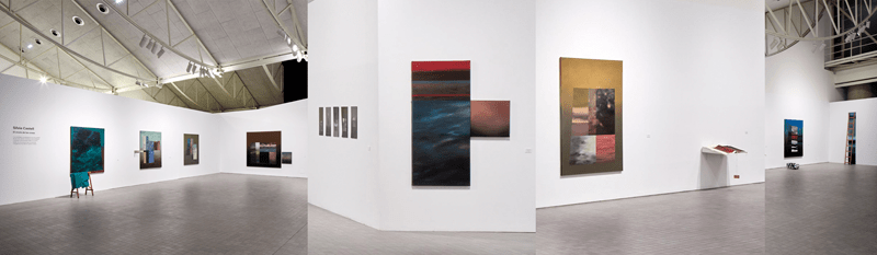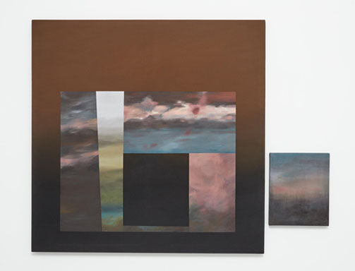 Sus pinturas se estructuran en dos planos donde se superponen abstracciones de mundos simplificados. El escenario del fondo, oculto parcialmente, se despliega articulándose a partir de la corporeidad que ofrece el horizonte que, a pesar de su no existencia, es un elemento visible y aquí se representa de manera difuminada delimitando lo que parecen territorios de arena, mar o cielo. Este plano alude a los colour fields de Rothko que no están aquí para atrapar la mirada y dirigirla a una ausencia meditativa, como pretende el artista americano22, sino para recalcar que el arte no es una falsificación de la experiencia sino el desarrollo de la misma. La artista interrumpe ese sosiego ofreciendo el paisaje que imagina o le gustaría que fuera: introduce, en el primer plano del lienzo, la fría y cortante geometría de fracciones de otros mares y cielos a los que se les impide su fluir. Estructuras cortadas verticalmente encajadas a modo de estrechas ventanas rectangulares o trapezoidales garantizando la multiplicidad que se ajusta más a la realidad; y contra todo pronóstico, el juego de contrapesos provoca un equilibrio, además de rezumar una inmensa calma, porque en su limitada visibilidad se proyecta la promesa de que esa no es toda la realidad. Detrás de lo que vemos está lo auténticamente libre, sólo hay que traspasar el marco cuadrangular para acceder a un conocimiento que de otra manera hubiera pasado desapercibido.