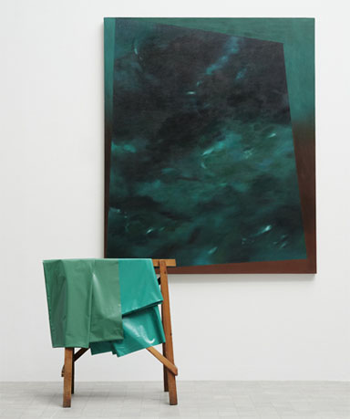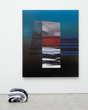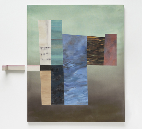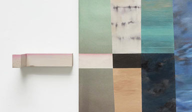 En obras como Verde, Paisaje y madera o Paisaje y manta se establecen relaciones de forma y color entre los objetos y la pintura llegando a describir, incluso, reflejos especulares. En esta última pieza, la manta es un elemento que aporta una perspectiva táctil novedosa, ofrece calidez frente a la frialdad del lienzo intocable. Está tejida a mano en los mismos colores que una de las partes del cuadro y alude a un espacio íntimo y agradable, memoria de un confort que acoge cuando nos disponemos a ver. La manta lleva implícita la voluntad de percibir de un modo seguro el misterio que la pintura encierra, ya sea un conocimiento real o imaginario entregado por similitud o contraste. En estas piezas se proponen complejas proximidades entre lo visible y el reflejo de lo invisible que nos hablan de un aprendizaje cotidiano a través de aceptar la poesía de lo mundano.