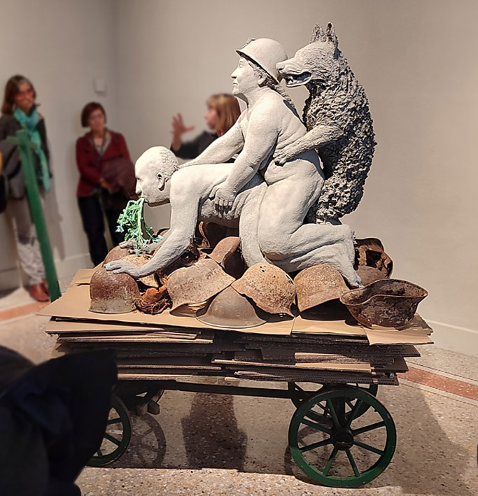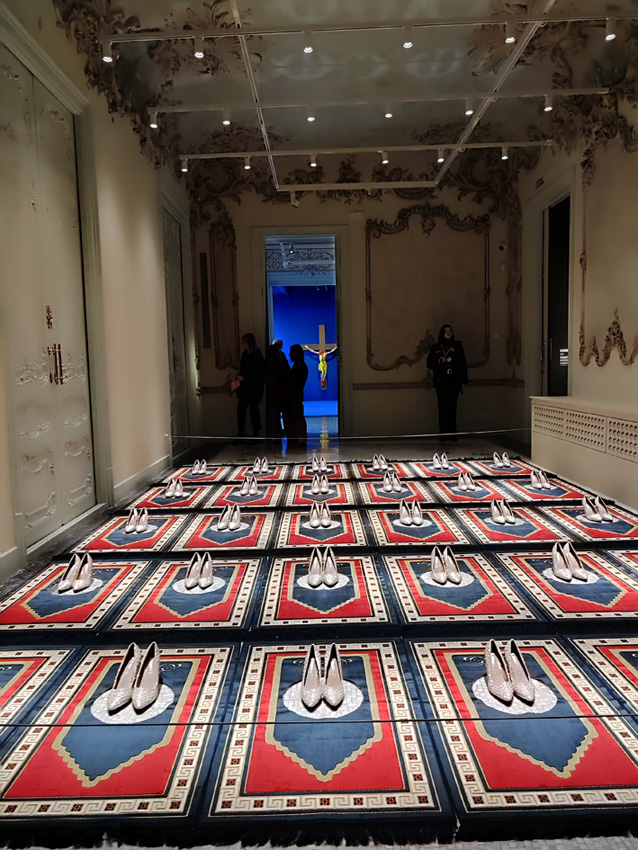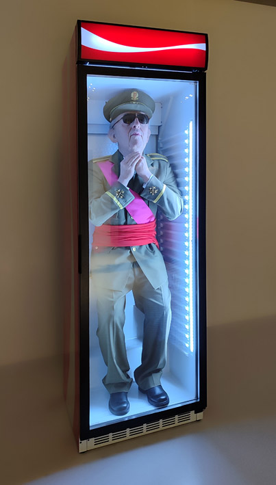 Entre las obras políticas que exhibe el museo se puede ver La pieza “Shark” de David Cerný, que muestra una representación muy realista de Saddam Husein, muerto y humillado dentro de una pecera, haciendo clara alusión al tiburón de Damien Hirst que tantas polémicas ha provocado. Esta pieza fue eliminada de la exposición realizada en una ciudad belga en 2006 para no ofender a la comunidad musulmana (eran recientes las manifestaciones por la caricatura de Mahoma publicada en el periódico danés Jyllands-Posten, acompañando precisamente un artículo que trataba la autocensura, la libertad de expresión y el miedo que tienen muchos autores a las represalias). La obra de Merino, “Always Franco”, levantó a la Fundación Francisco Franco exigiendo su retirada de ARCO 2012, por atentar contra su honor. Aún sigue generando reacciones en redes igual que el dibujo de Donald Trump desnudo y con su típica expresión de burla, de escaso valor artístico, pero es un ejemplo muy relevante por el hecho de ser censurada la artista, Illma Gore, no solo a exponer la pieza en EEUU, sino en Facebook ante el aluvión de protestas y amenazas de muerte que recibió; y, sin embargo, su valor en el mercado en 2016 fue alrededor de 1,3 millones de euros (aunque no he podido saber cuál fue el precio que pagó el museo por esta pieza y el video en 3D que la acompaña).