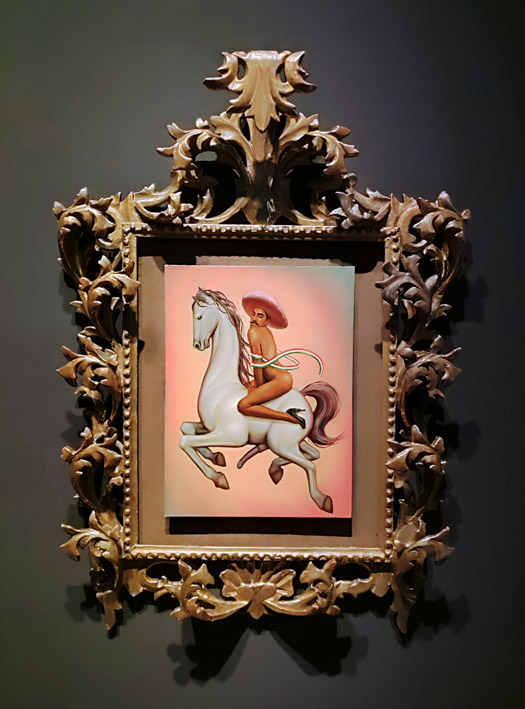 Encontramos la contrapartida actual al retrato ecuestre tradicional, símbolo de poder majestuoso, en el retrato a Zapata montando a caballo a caballo. No es la magnificencia de la persona, sino el empoderamiento simbólico de todas las libertades, incluida la libertad sexual. Esta pieza de Fabián Cháirez titulada “La revolución” suscitó manifestaciones por asociaciones zapatistas rurales, y la propia familia, amenazando con destruirla si no la retiraban del Museo del Palacio de Bellas Artes de Ciudad de México donde se exhibía. Del mismo modo, sin preverlo, fue prohibida por las autoridades chinas la serie de retratos a “Mao” de Warhol en una exposición itinerante por todo el país.