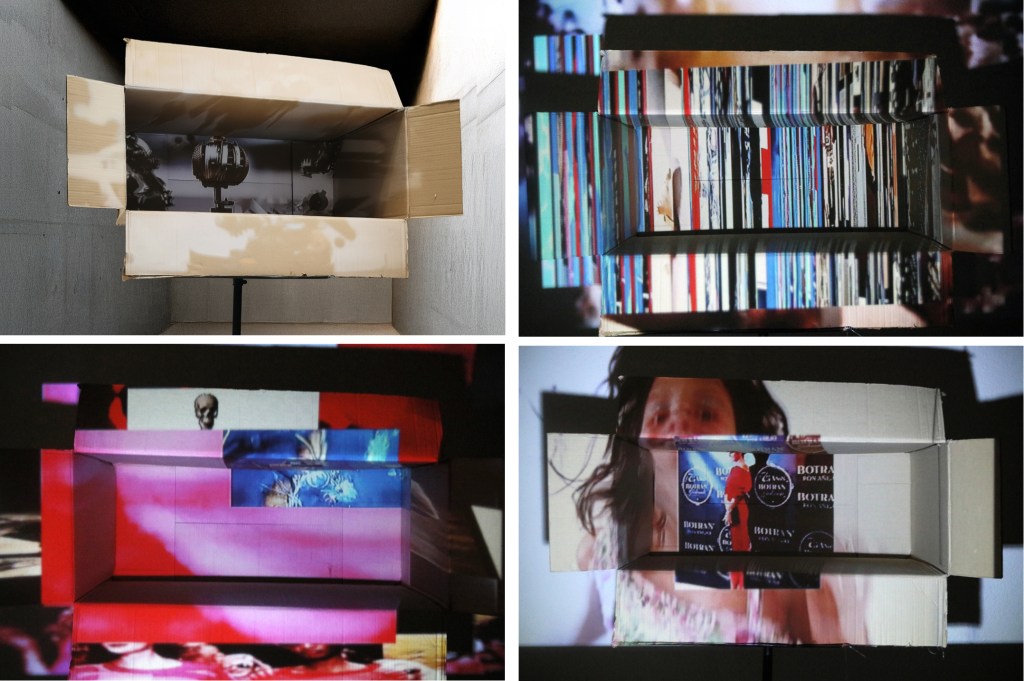 Con esta pieza el artista redefine el concepto de espacio: la caja física alberga un espacio nacido de la voluntad, no de las tres dimensiones euclidianas. La proyección no habita Murcia, ni Efímera, ni la Tierra: habita un plano mental que trasciende las coordenadas del tiempo y del lugar. La caja, como el árbol, deviene arquitectura simbólica: una cámara de resonancia entre deseo, información y conciencia.