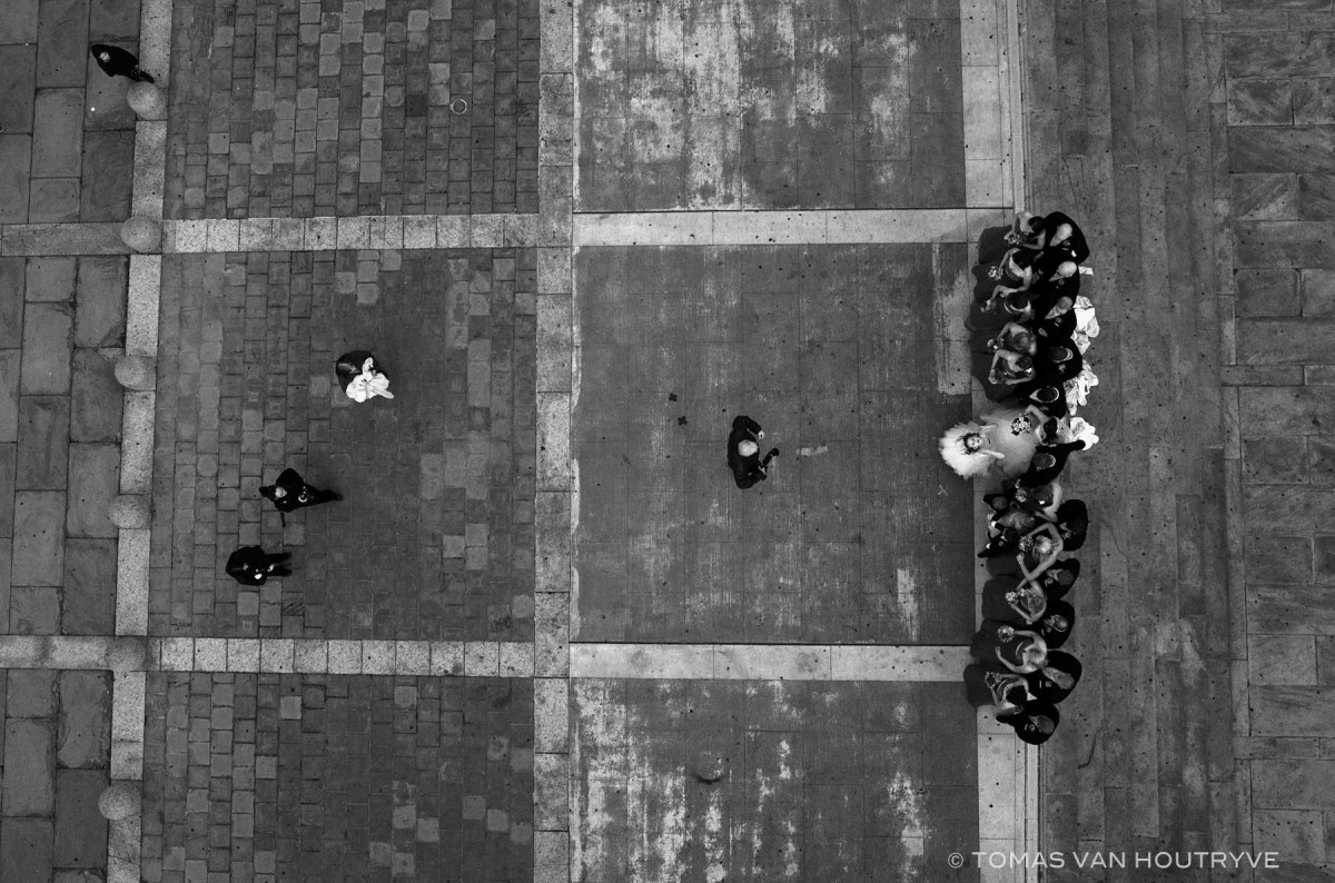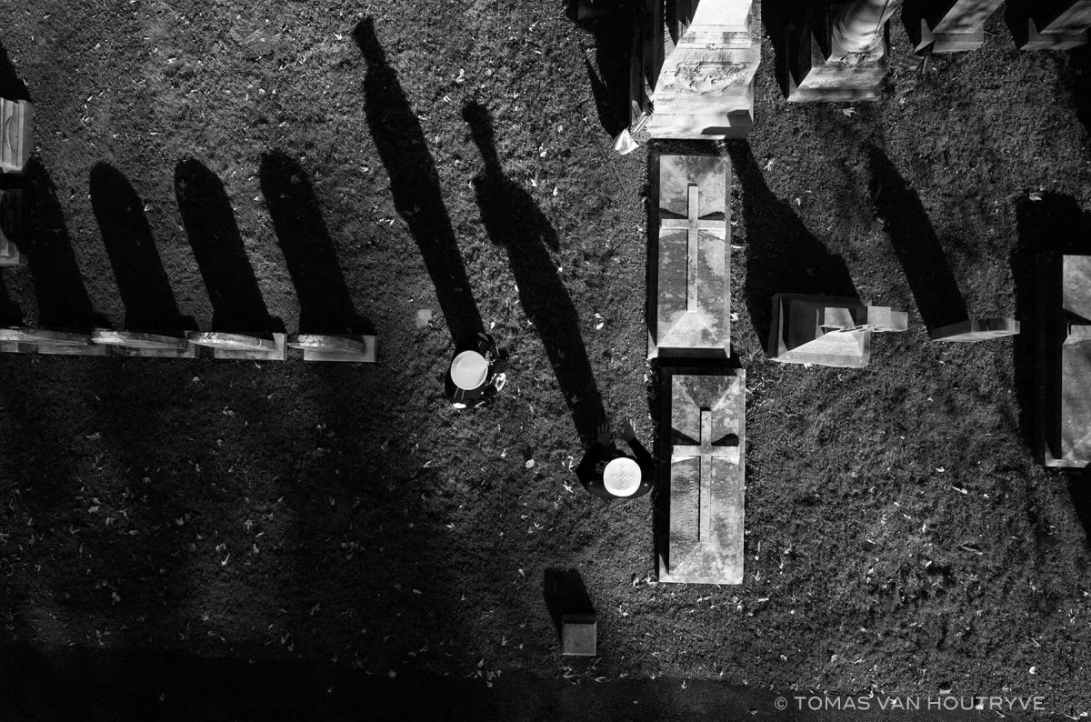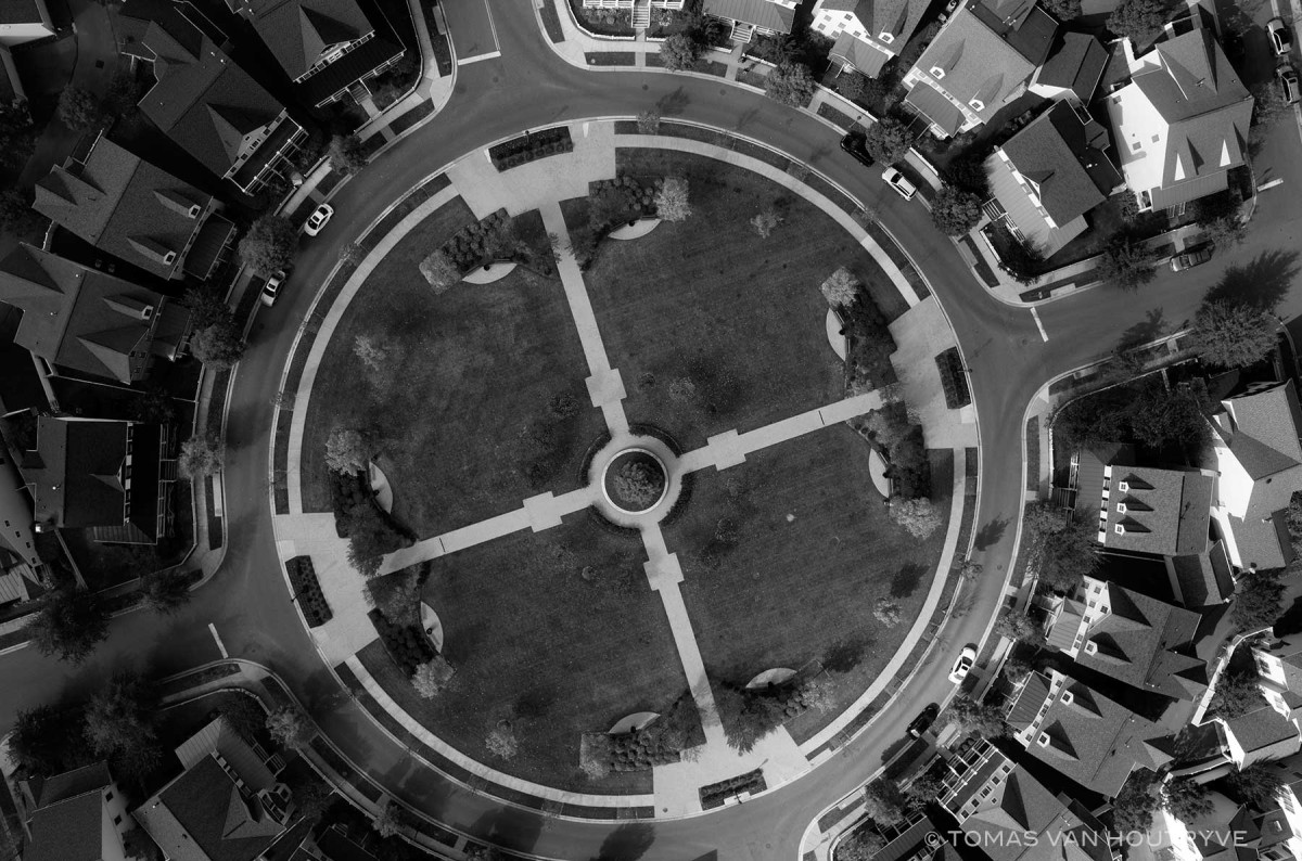 Houtryve instala su cámara en un dron con el que sobrevuela EEUU fotografiando momentos cotidianos, análogos a los que han sido bombardeados desde 2004 y silenciados por la prensa. Un trabajo serio, entre lo periodístico y la plasticidad que proporciona el observar la vida corriente de las personas a través de sus sombras proyectadas por la luz del atardecer y que de otra forma no se verían más que pequeñas masas informes…… evocan una ilusión de cotidianidad platónica, ajenos a la realidad por ignorancia, pero sobre todo por manipulación.