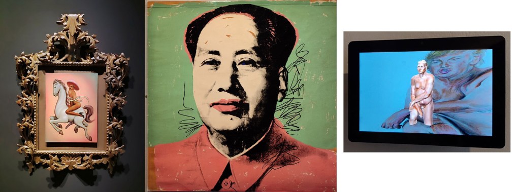 Encontramos la contrapartida actual al retrato ecuestre tradicional, símbolo de poder majestuoso, en el retrato a Zapata desnudo y con tacones montando a caballo. Lo que aquí se representa no es la magnificencia de la persona, sino el empoderamiento simbólico de todas las libertades, incluida la libertad sexual. Esta pieza de Fabián Cháirez titulada “La revolución” suscitó manifestaciones por asociaciones zapatistas rurales, y la propia familia, amenazando con destruirla si no la retiraban del Museo del Palacio de Bellas Artes de Ciudad de México donde se exhibía. Del mismo modo, sin preverlo, fue prohibida por las autoridades chinas la serie de retratos a “Mao” de Warhol en una exposición itinerante por todo el país.