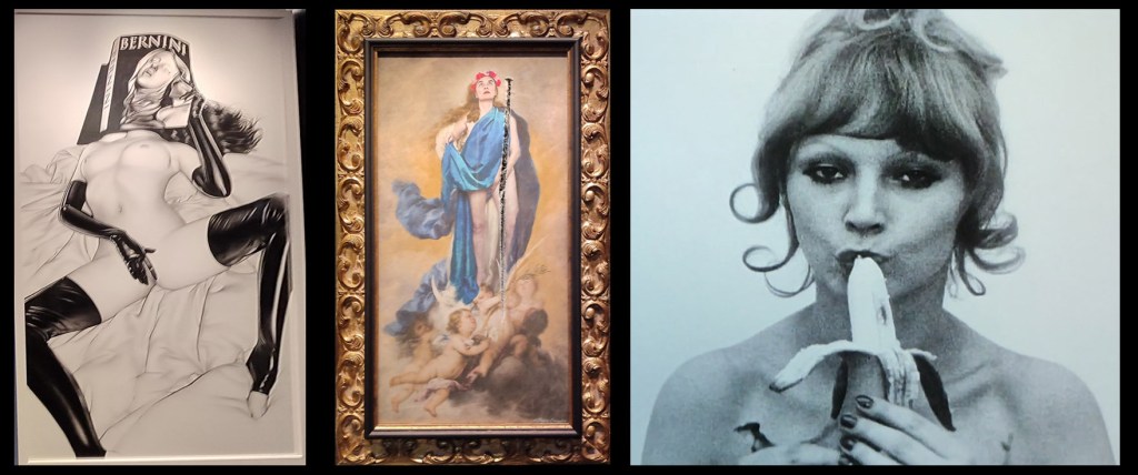 La sexualidad femenina ha sido siempre objeto de controversia, manipulación y censura; por ello, los/as artistas inciden en los últimos tiempos e insisten en mostrarla desde un lado crítico a las ideologías cristianas donde la mujer solo debía cumplir el estereotipo de madre abnegada, sumisa, fiel, mutilada para el deseo y el placer. Obras como L’estasidilatex (donde se muestra una versión muy libre del éxtasis de Santa Teresa de Bernini) de Juan Francisco Casas, censurada en 2016 por el embajador español en Roma en una exposición en la Real Academia de España de la ciudad, después de haber sido objeto de quejas y amenazas, ese mismo año, en la Galería Fernando Pradilla de Madrid. Algo parecido ocurrió con la pequeña pintura de Charo Corrales, “Con flores a María”, en la que se muestra una virgen solo cubierta por un manto azul y masturbándose. En este caso las amenazas se cumplieron y el agresor llegó a romper el lienzo de arriba abajo, tal como aparece expuesto en el museo.
