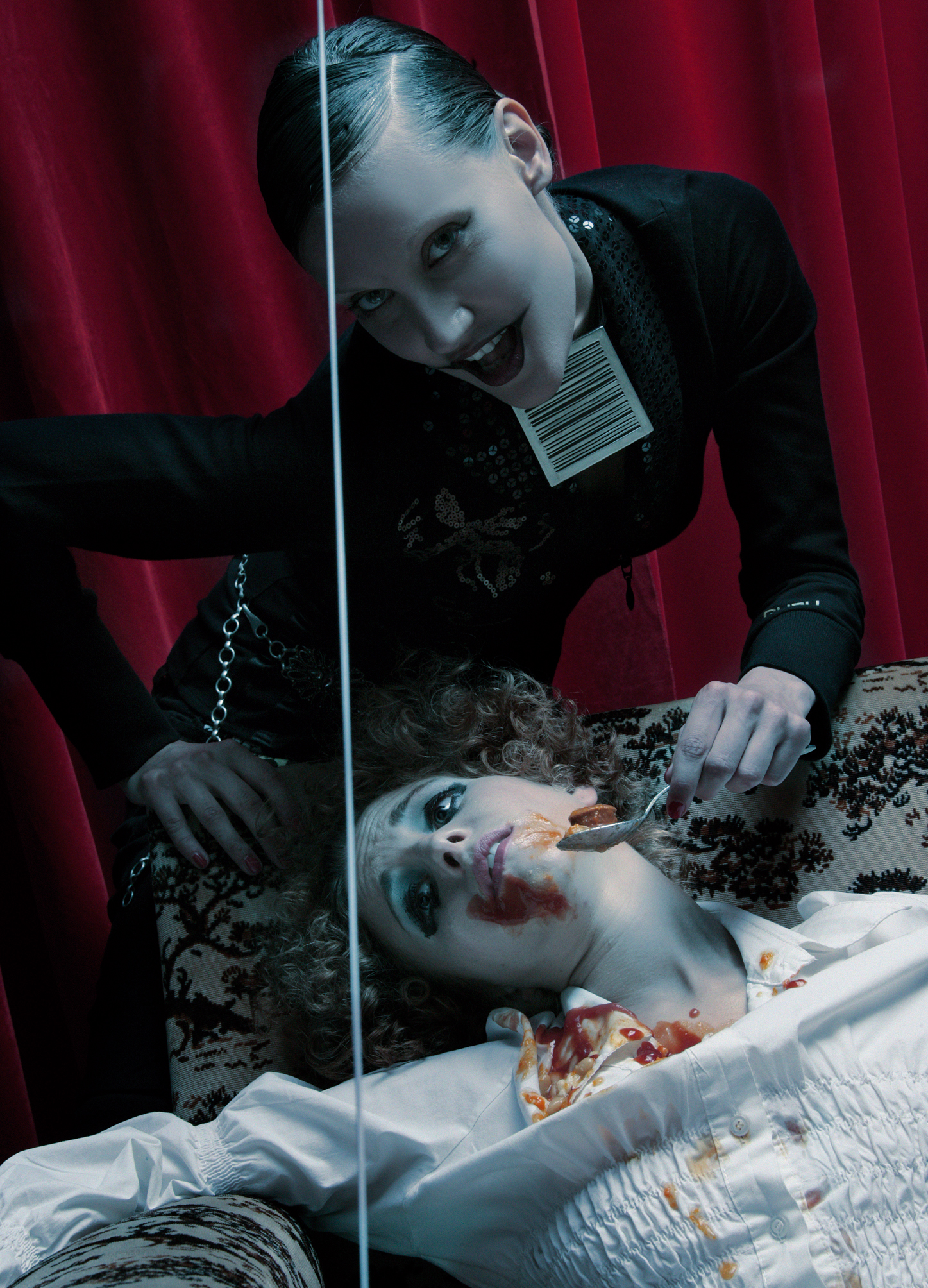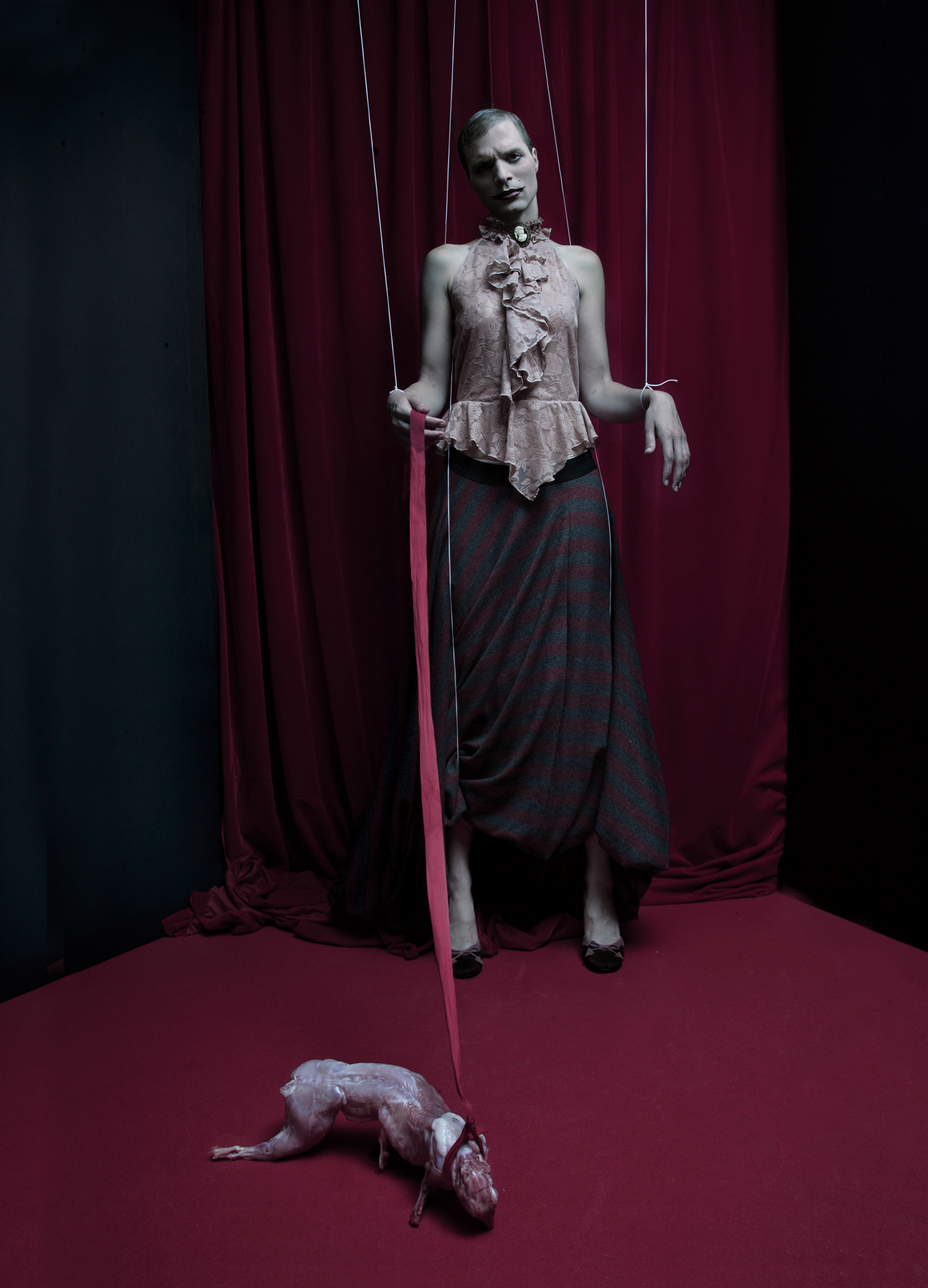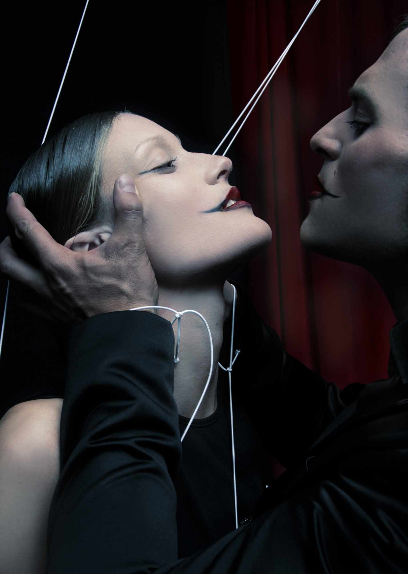 Los hombres de corazón en sombras y sonrisas falsas dictan sus leyes y ejecutan las sentencias a los que no cumplen. El teatro de la vida de Calderón se manifiesta aquí como el mundo dividido entre fuertes y débiles; en el escenario, cada uno de ellos representa el guion que le ha sido asignado, realizan la perfomance de guiñoles sin ser conscientes que oprimidos y opresores están siendo manejados por entidades superiores, y no precisamente divinas, que se ocultan detrás de los telones políticos y económicos. Son las sanguijuelas disfrazadas de corrección que se escabullen entre bambalinas para que nada se salga de lo escrito.